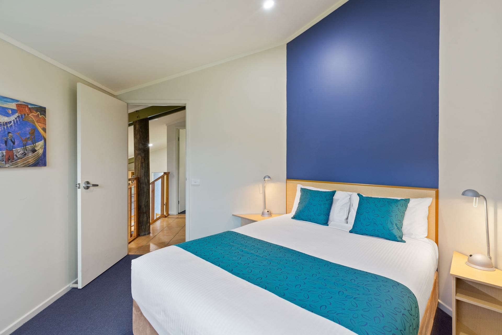 Set among the trees and overlooking landscaped gardens, our Two-Bedroom Treetop Apartments offer a peaceful and private coastal retreat. Each fully self-contained apartment features a queen and two single beds, a modern bathroom, full kitchen, internal laundry, and split-level open-plan living that opens onto a private balcony — perfect for enjoying the natural surrounds.